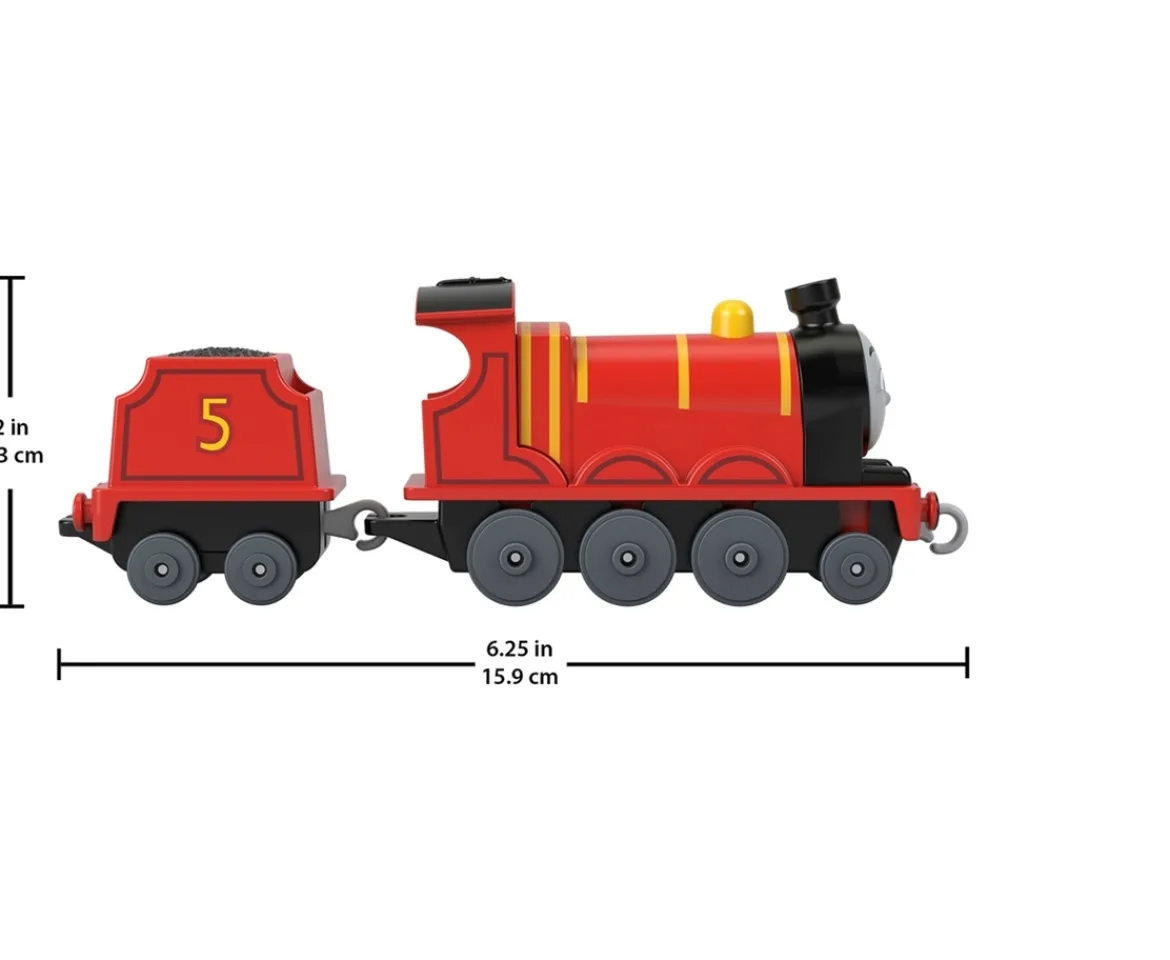 Exciting Sodor adventures await with this Thomas & Friends James push- along vehicle from Fisher-Price. This large die-cast engine comes with a detachable tender for even more play (and deliveries!). Young conductors can push James to send him racing along any Thomas & Friends track for loads of fun! (Track sets, additional vehicles and accessories all sold separately and subject to availability.)Collect additional Thomas & Friends push-along trains to build a railway full of Really Useful Engines and explore the Island of Sodor like never before. (Each sold separately and subject to availability.)