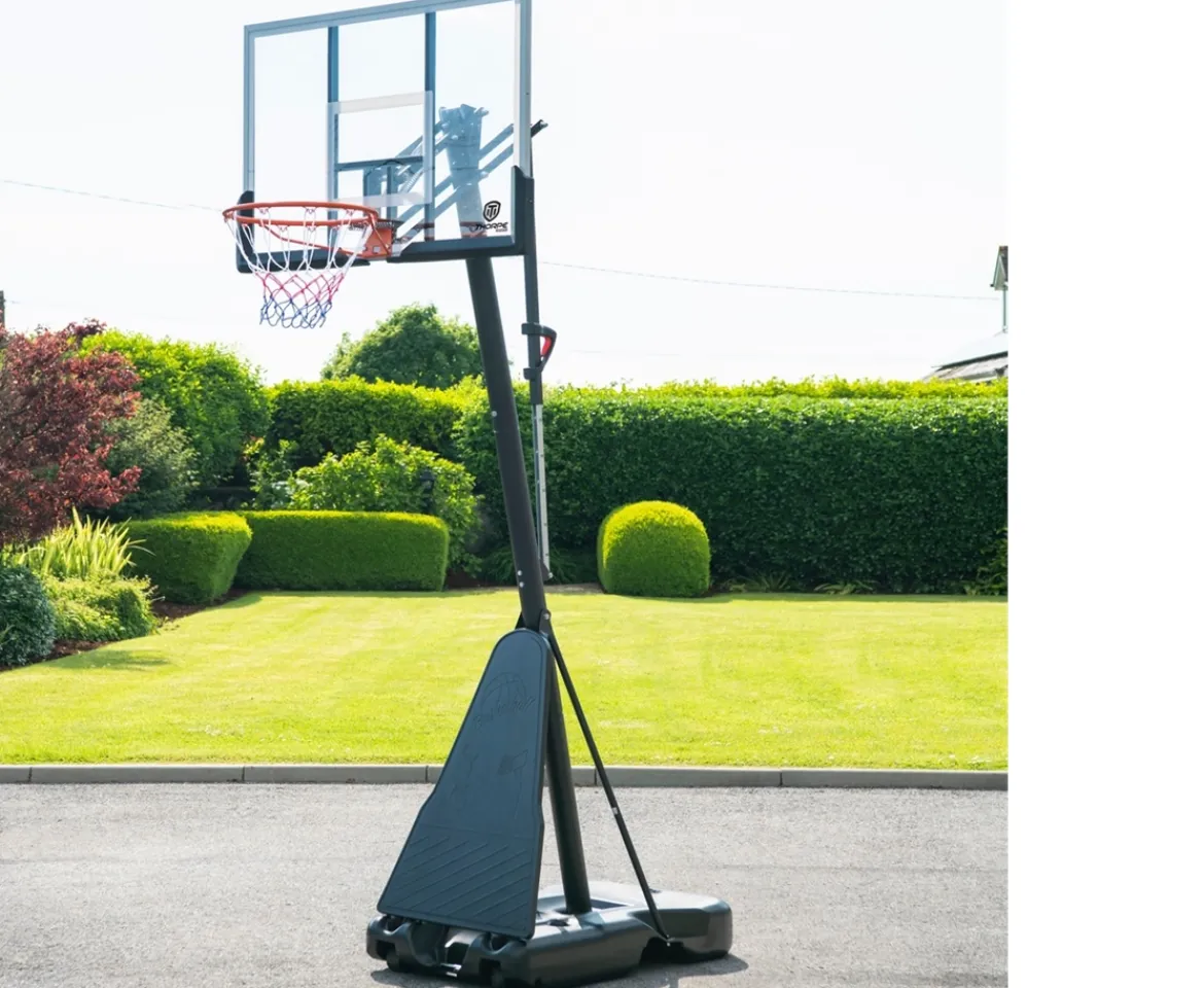 Shoot hoops with the Thorpe Sports Adjustable Basketball Stand with 48″ Backboard and Rebound! You can adjust the height of the net from 247cm to 305cm to suit the height and skill of growing athletes, with a wheeled base to transform any outdoor space into a court.The shatter proof PC backboard features a steel frame, 45cm steel rim and high quality net for strength and durability. The wheeled base of this basketball stand easily transforms your garden into a basketball court. You can fill the base with sand for greater stability as you play, until it’s ready to roll aside for storage.