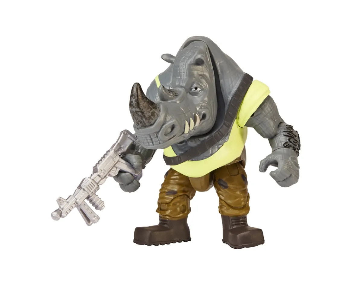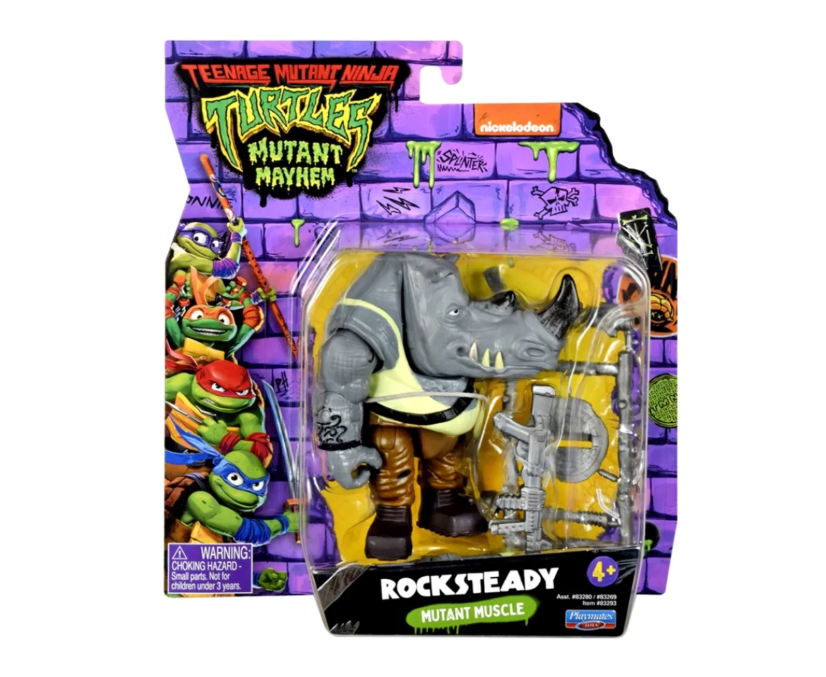 - MOVIE PACKAGING: Rocksteady comes in a highly decorated blister card package with bright, bold details that includes TMNT Mutant Mayhem movie branding.