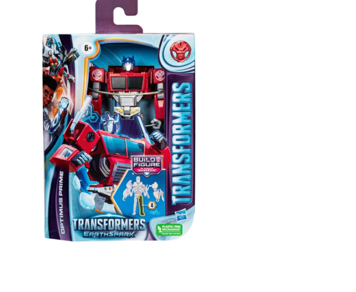 Deluxe Class figures bring Transformers toys to life from the television screen right to your home! The classic red and blue Optimus Prime toy as seen in Transformers: EarthSpark animated TV series stands at an impressive 12cm tall!Transforming Optimus Prime ToyConvert Transformers Optimus Prime from robot to truck mode in 19 steps. Build and display your very own Transformer in robot mode or truck mode – and pose him in different ways!Collect ‘Em AllEach Deluxe Class figure comes with 1 build-a-figure piece, including this Optimus Prime toy. Combine all the pieces by collecting all Deluxe Class figures to build a figure of Dr. Meridian “Mandroid”, the villainous half-human half-robot from the animated series. Build-a- figure scale is 11cm. (Each sold separately, subject to availability).