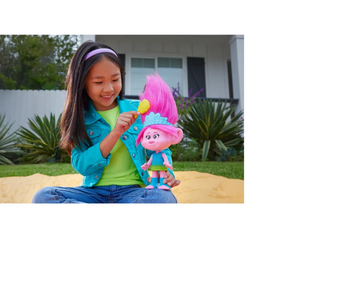 - DreamWorks Trolls™ Rainbow HairTunes™ dolls turn playtime into a celebration with lights and sound! ?Rainbow HairTunes™ Poppy doll features extra-long pink hair that lights up and plays music and sounds from the movie DreamWorks Trolls Band Together! ?Kids can use the included brush or their finger on the dolls' hair to spark magical play with music and phrases! ?The doll also has a removable hair accessory to add to the storytelling fun! ?With their positive vibes, the Rainbow HairTunes™ dolls make great gifts for kids, especially DreamWorks Trolls™ fans ages 3 years and older!
