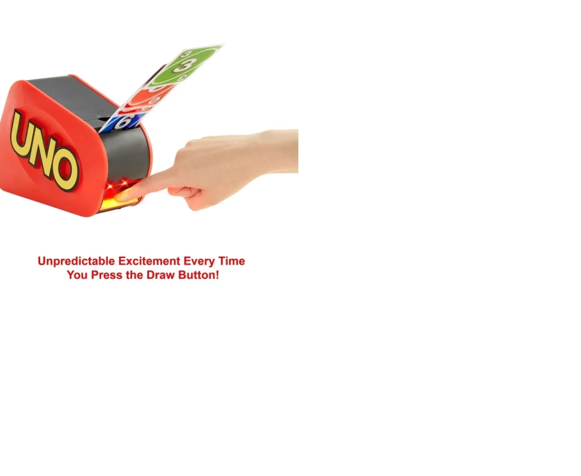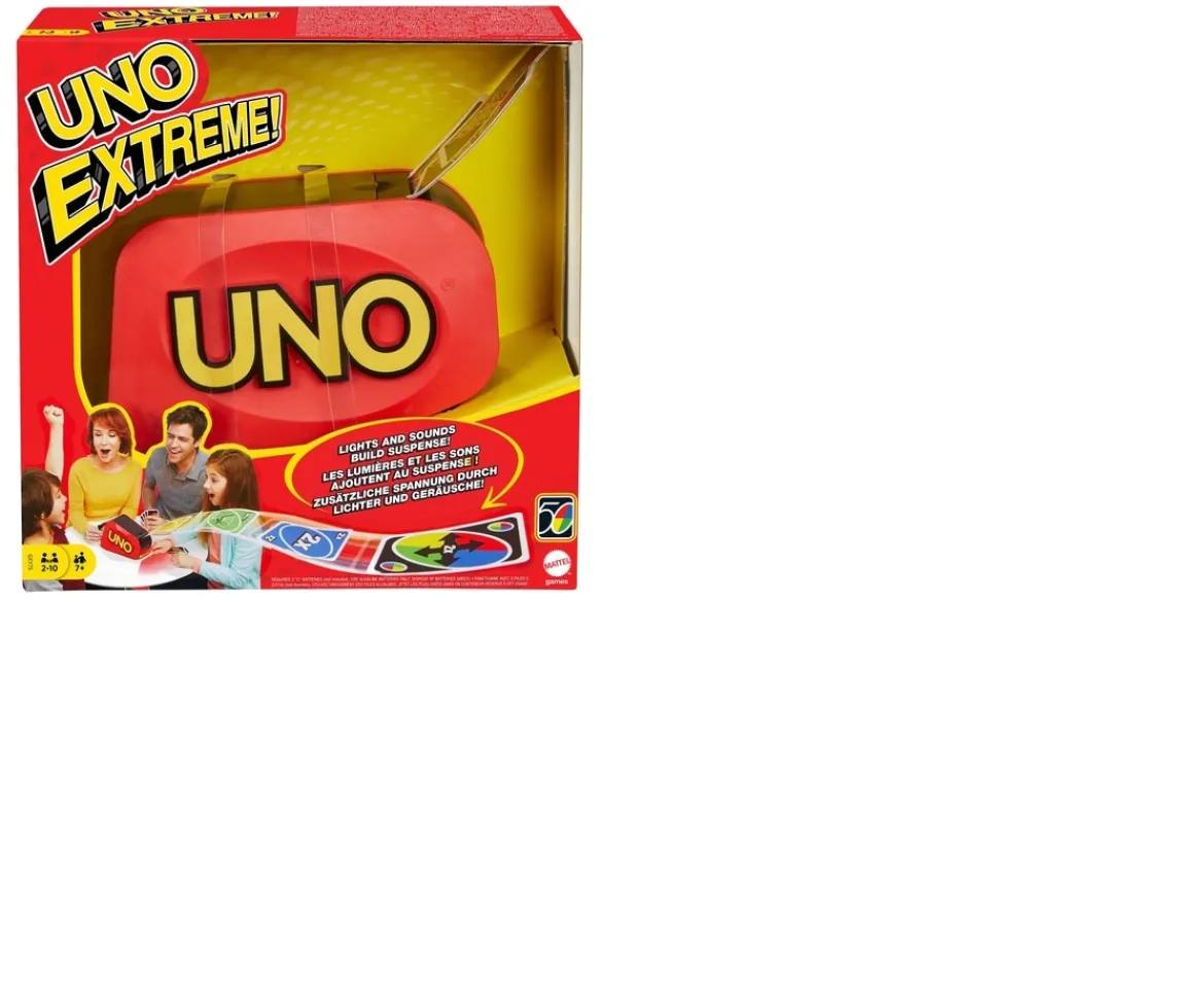 Race to get rid of all your cards, but watch out for the special action cards! The Uno Extreme dispenser can fire up to 8 cards at once! Or will you be the lucky one and get no cards at all! For 2 – 10 players.