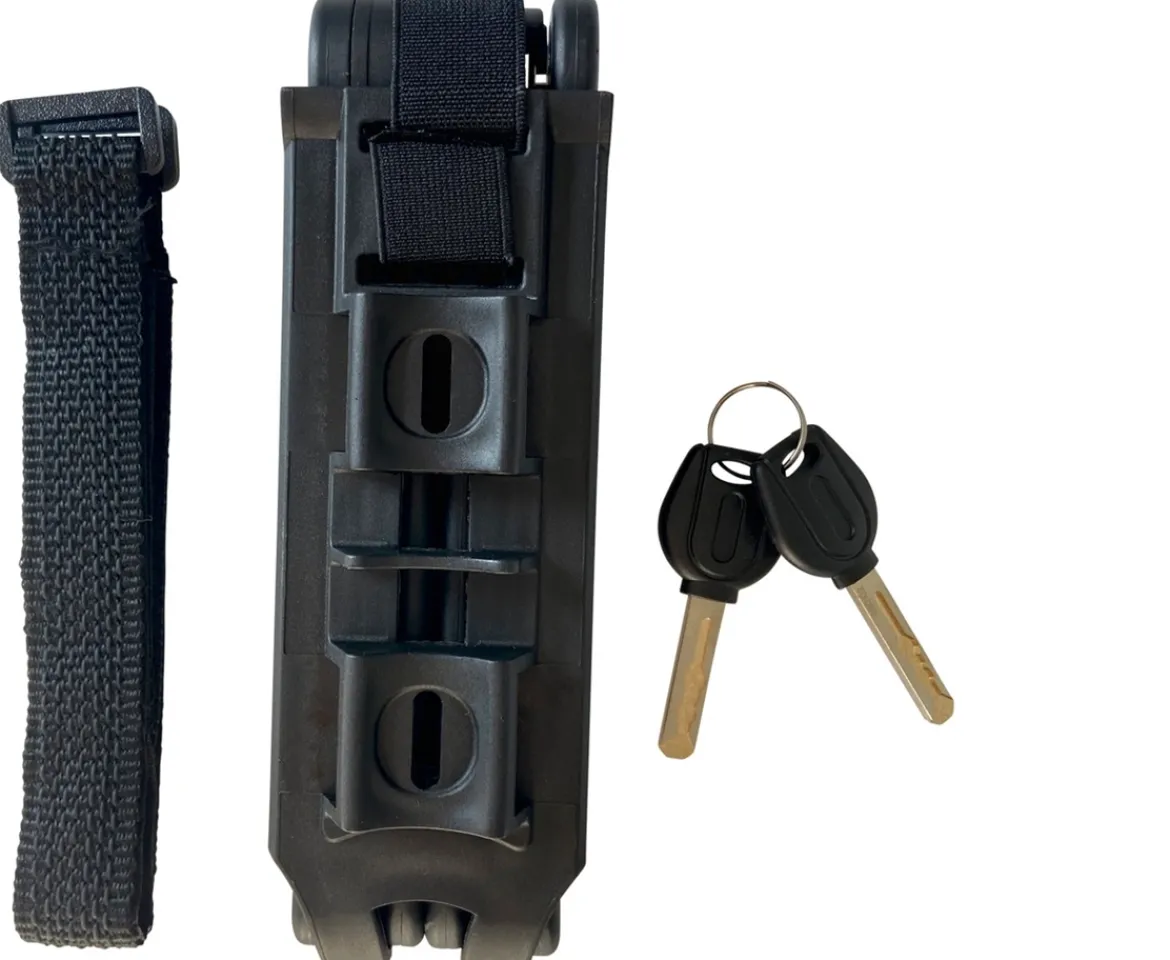 If youre tired of carrying a bulky u-lock or bike chain lock, then the lightweight Verve Folding Bike Lock will be perfect for you. This bicycle lock has a 85cm chain link circumference, which makes it suitable for all types of bikes. Each metal plate of the bike folding lock is connected by a rivet, which allows it to rotate flexibly, giving you plenty of options as to what to attach it to.This foldable bicycle lock comes with a well-designed mounting system that allows you to easily attach and transport your bicycle lock whilst cycling. The bracket is easy to use and stable enough to mount without rattling while you ride. If you are looking for a multifunctional and portable bike lock, then this lock for bicycle will be your best choice.