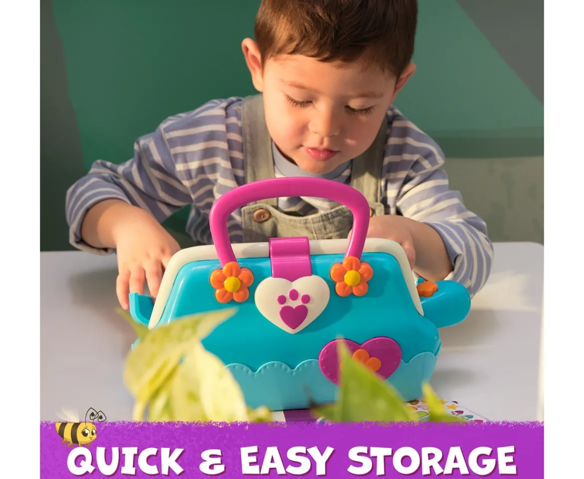Create thrilling vet-play adventures in Sweetwood, full of caring and healing, with Vida’s Vet Bag. This exciting kids’ doctors play set looks just like it does in the show and features 5 exciting sensory toys, like an electronic stethoscope, a thermometer and a reflex hammer. It also includes a Popcorn plush toy, a patient chart and a sticker sheet, allowing you to care for your friends and animals, just like Vida. The Vet Bag also works as a toy storage container, so you carry it anywhere, then store all your learning toys after an exciting day of dress up and pretend play. If you’re searching for toys for ages 2–4, Vida the Vet toddler toys for kids aged 3 and up are excellent gifts for kids, offering learning toys for girls and boys that love animals and being a pretend play doctor with all their dolls and stuffed animals for girls. Featuring delightful small toys and sensory toys like a stethoscope in a kids’ doctor playset, cute stuff like toy figures and playsets, a whimsical tree house vet clinic and lovable preschool toys like the colourful and vibrant plush toys for girls to pretend to be Vida.