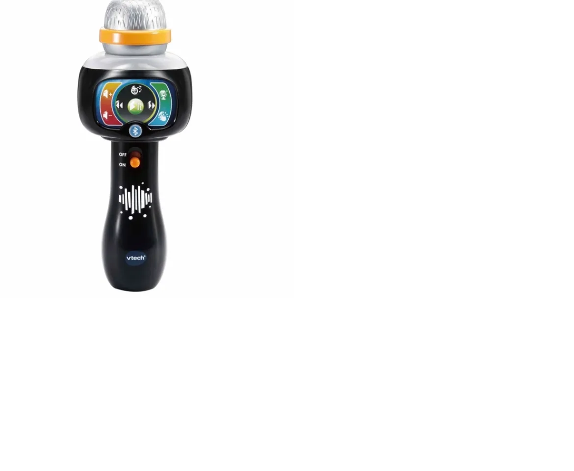 With the VTech Singing Sounds Microphone musical toy, the party never has to end! Connect to your own external music player via Bluetooth to play and sing along to your favourite tracks.15 SongsThere are 15 built-in sing-along songs on the VTech Singing Sounds Microphone. Sing along with or without the vocal track and switch mode at the press of a button!Fun EffectsFor extra fun, apply a funny voice changing effect to see how silly you can sound. This music and sound sensory toy even lights up with the music! Dedicated buttons control volume level, pause, play, previous, skip and instant applause sound effects.Music & Sensory PlaySensory toys with music and sounds can help support your child’s development and self-expression. And sing-along musical toys offer a great way to get creative!