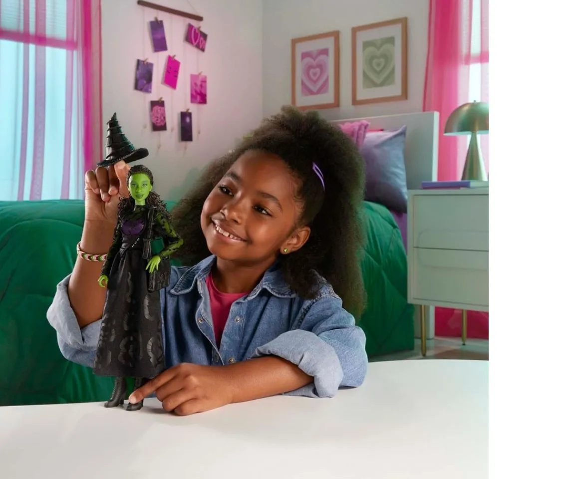Step into the enchanting world of Oz with the Wicked Elphaba Doll, inspired by Universal Pictures’ hit musical! This fashion doll brings Elphaba’s iconic look to life with her removable, movie-accurate dress, signature hat, and school bag.Featuring green skin and long braided hair styled in a ponytail, the Elphaba doll captures every detail of the beloved character. With flexible articulation at the torso, elbows, wrists, and knees, Elphaba is perfect for both dynamic play and stylish display.A magical gift for fans of all ages, this doll embodies the spirit of sisterhood and adventure. Collect all the characters from the land of Oz to complete your set (each sold separately).
