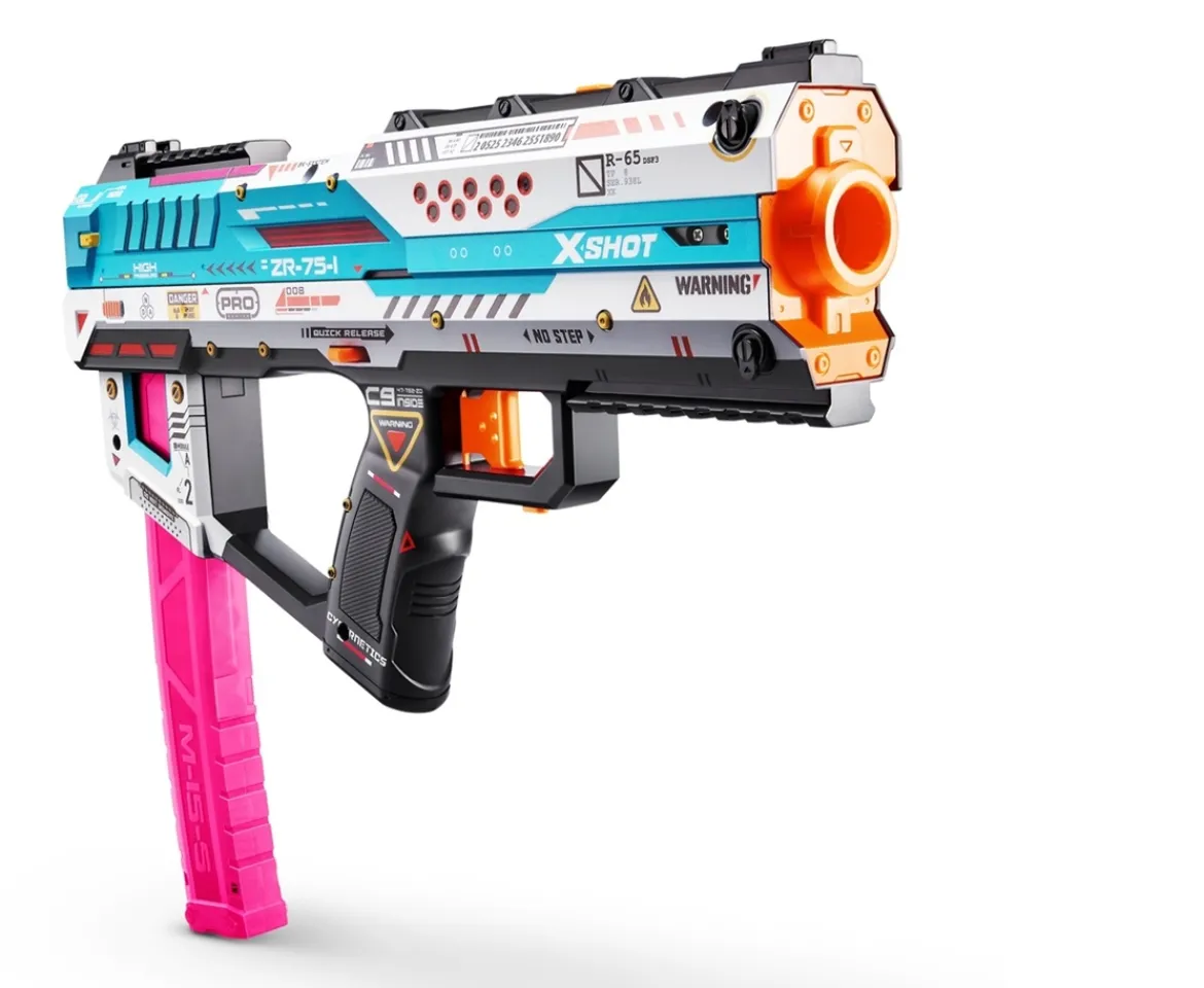 Take your dart blasting to the next level with the XSHOT Skins Pro Series Fury-X Blaster. The Fury-X is designed to achieve accuracy and distance in every blast. Equipped with a quick release 20 half dart capacity clip, your blaster battles have just gone pro!Includes 40 XSHOT Air Pocket Technology half darts for a further, faster and more stable flight. Featuring Slam Fire Action to blast through the 20 dart clip in seconds and take out targets up to 20 metres away! Go next level with XSHOT Pro Series.