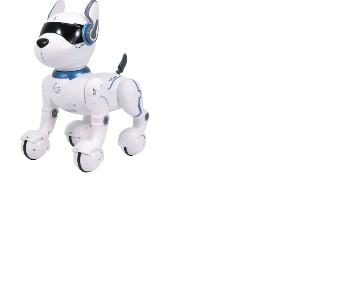 Voice controlled and remote control smart robot dog pet. It comes with 9 voice commands, imitates 10 other animals and you can program your own actions.